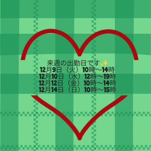 来週の出勤日です😆