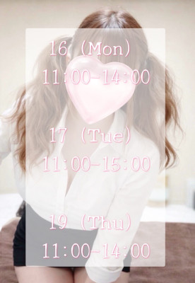 次回出勤予定です♡ 2026/02/14 18:05:15 こんばんは🍀* ゚来週の出勤決まったのでお知らせです💓来週は日数も時間も少ないですが🥹会いに来てくれると嬉しいです🫶事前予約もお待ちしてますね🌟では皆さま!良き週末をお過ごしください♡